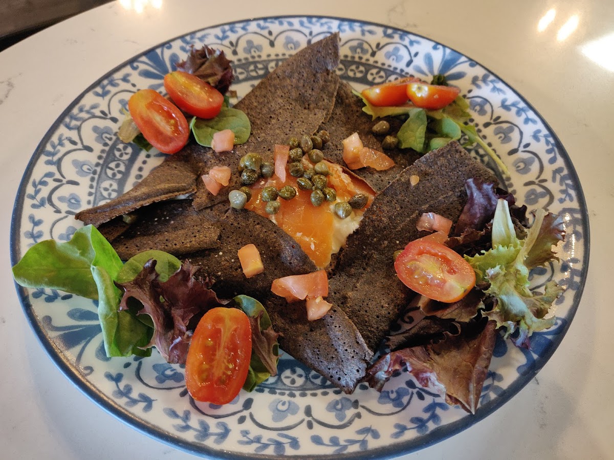 Buckwheat Crape with Salmon Arugula Cream Cheese